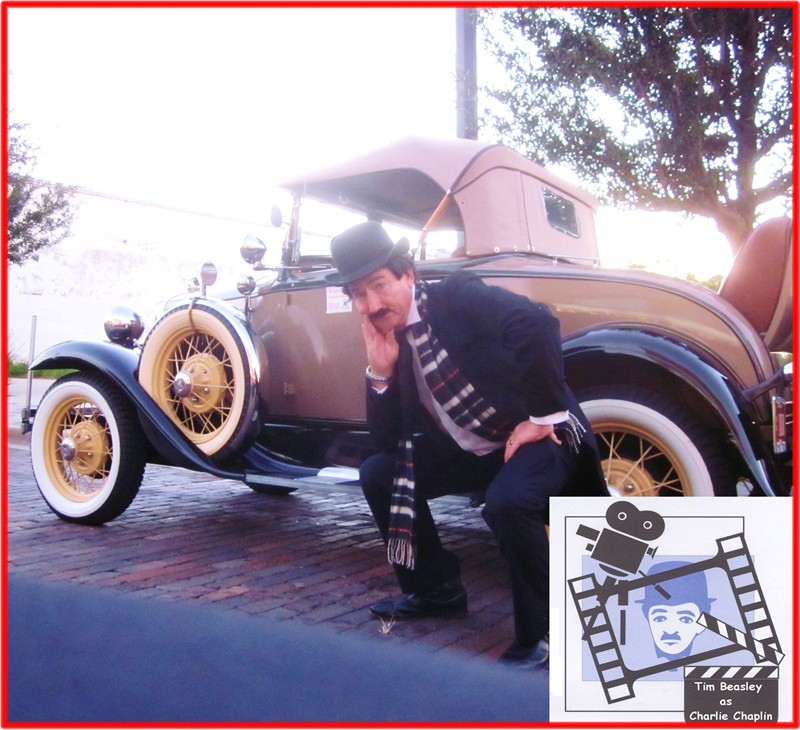 Tim Beasley is often asked to perform his sterling impersonation of Charlie Chaplin as “The Little Tramp” for fundraisers, public events, retail promotions and any special social gathering wanting the fun of a “Hollywood” or “Roaring Twenties” costumed event.